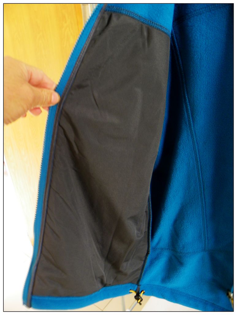 内胆的领口处采用灰色的针织植绒布,更耐脏也更舒适 内胆的衣兜 内胆主要通过前襟处的拉链与冲锋衣连接为一体,两条拉链都是隐藏式设计,平时藏在冲锋衣门襟处的翻边内,美观又实用,可以避免拉链与人体直接接触的不舒适感。牧高笛猬甲冲锋衣内胆的拉链是牧高笛的定制拉链,虽然我们不知它出自哪个厂家,但从外观上看它的质量应该不错,能够有可靠的保证。 可能是有意为之,内胆的左拉链头上有延长绳,右拉链头却没有延长绳(看其它品牌的冲锋衣也有这样的),希望它不是一个偶然的缺失。但这么做的道理是什么呢,我不太明白,亲爱的朋友,你知道这其中的道理么? 左右拉链对比 专门订制的拉链,上边有有牧高笛的LOGO