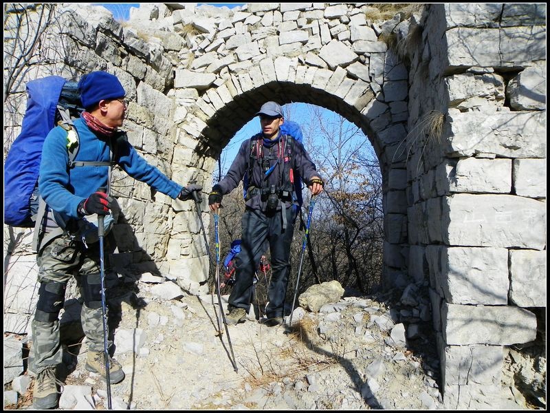我们在城门洞处稍事逗留,一侧的圆形建筑让我们很好奇,它是做什么用的?有人说是厕所,也有人说是灶间(厕所、灶间,呵呵)了,我认为它是站岗的哨所,谁对谁错?无人评判,其实对错并不重要,我们又不是考古的,没有必要非弄清是对是错。
