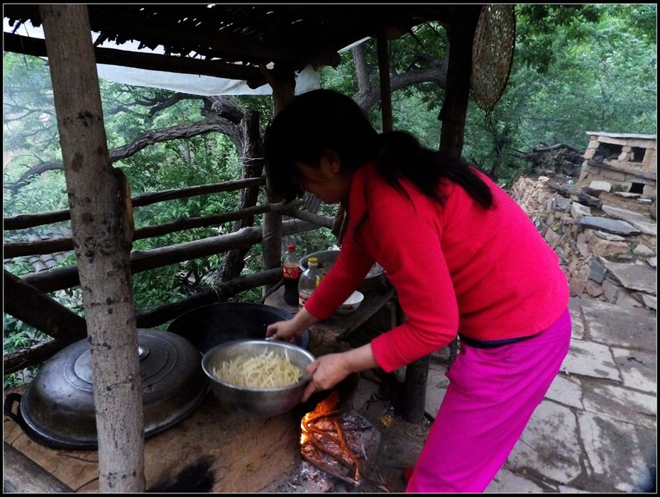 晚餐,铃铛借老梁家的锅灶炒土豆丝。严重声明:这是摆拍,绝对的摆拍:铃铛已把炒好的土豆丝盛出来了,见我要拍照又倒回锅里装模作样重新炒了个二回。所以说,照片有时也不是真的,照片同样可以造假,这一回,我和铃铛就不大不小的做了一回假。