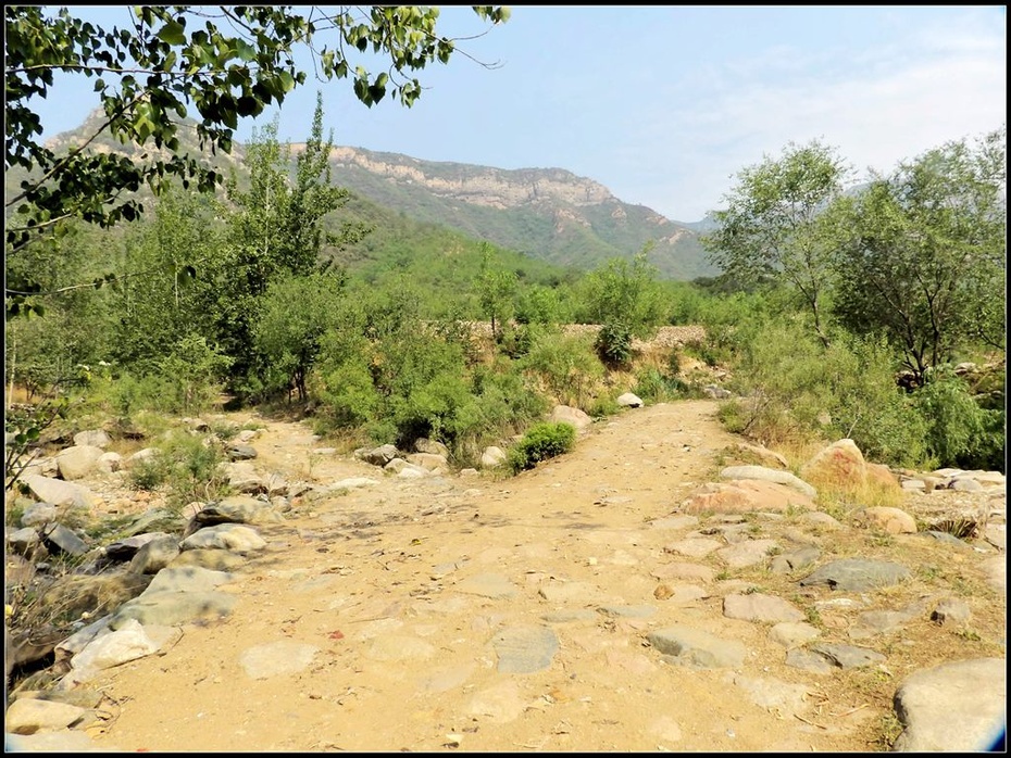 行不远是大家熟悉的岔路口,左拐去情人谷、白果树;右行是常河水库,顺这条路可登五峰山 ,是常河登五峰山的主路。说起来惭愧,常河我来过N多次,五峰山也登过好几回,常河瀑布这条沟也不止一次的走过,但多是从五峰山下来,下到这条沟又往别处拐了,沿沟往上行只走过一次,走到瀑布上边不远处就原路返回了。走这条沟上五峰山,我还真一次也没走过。今天,正好可以弥补这个遗憾了。