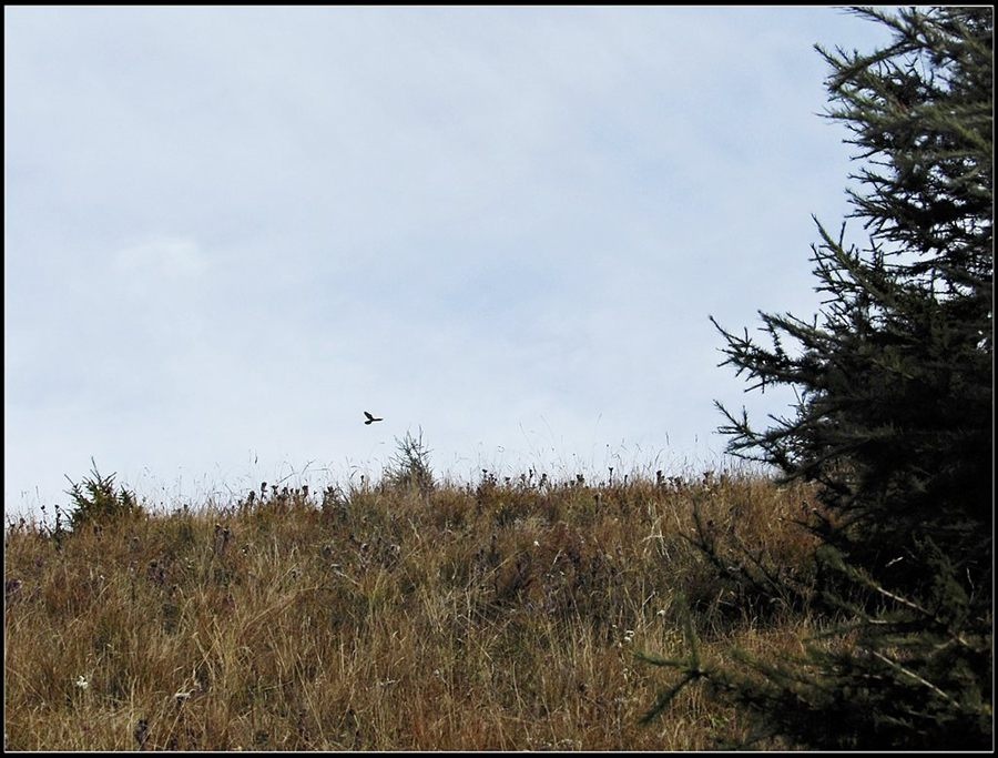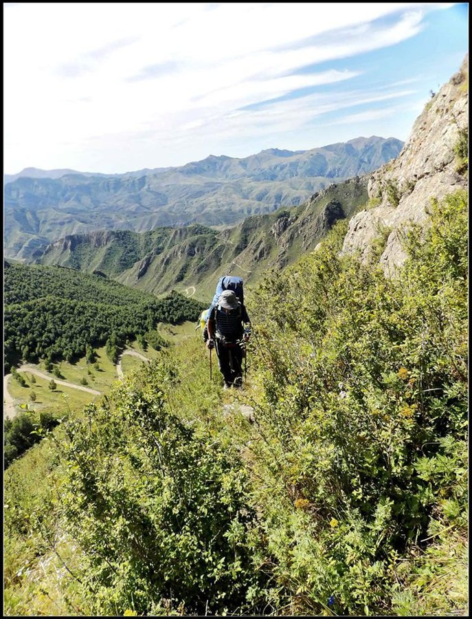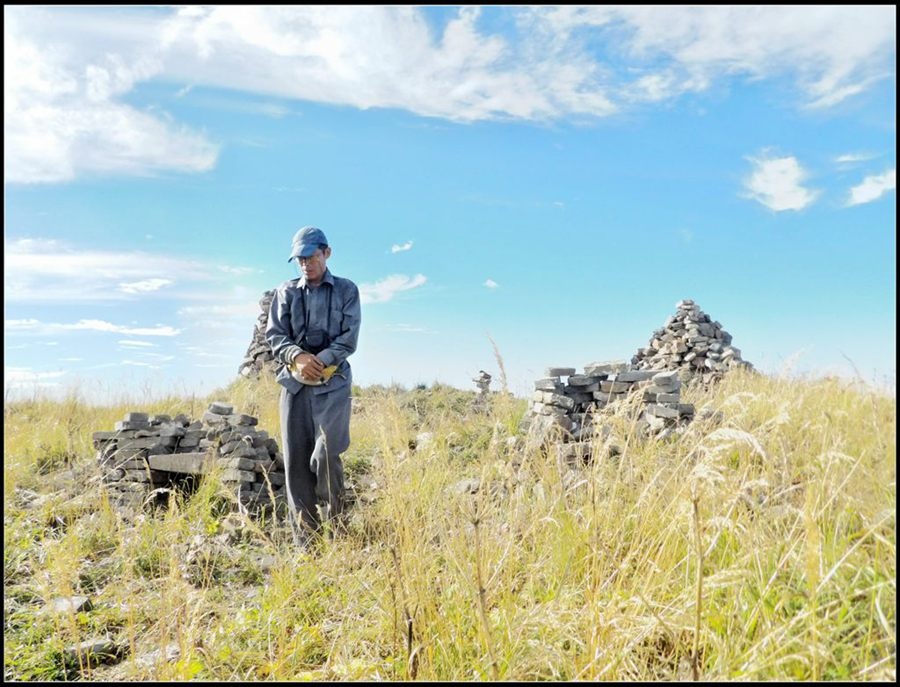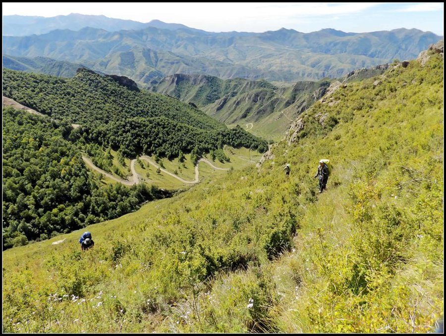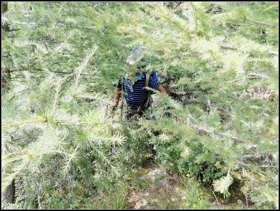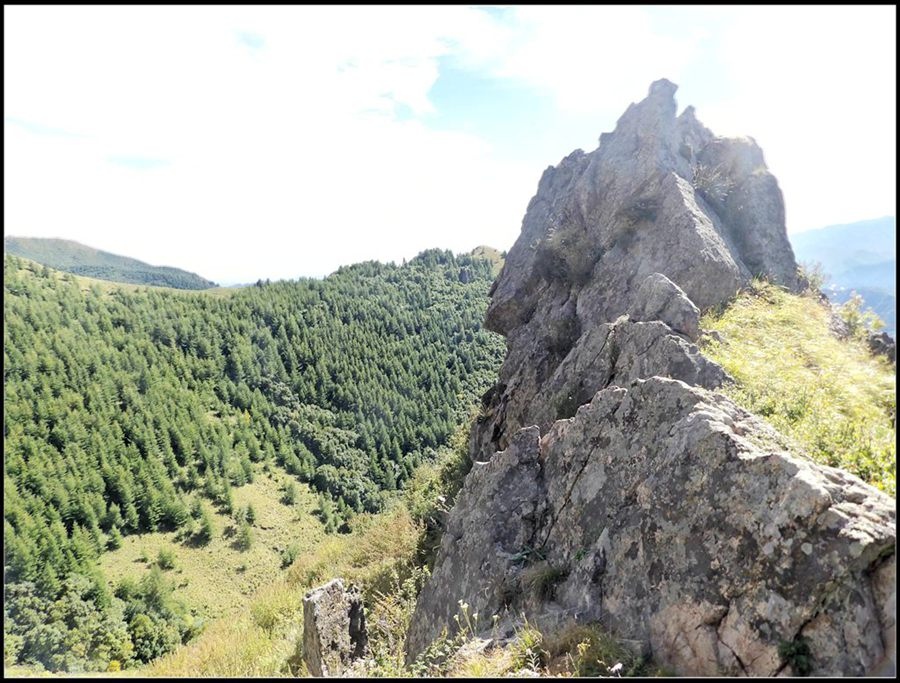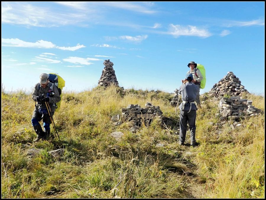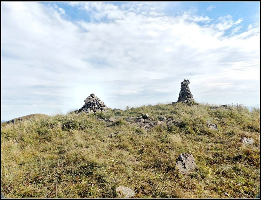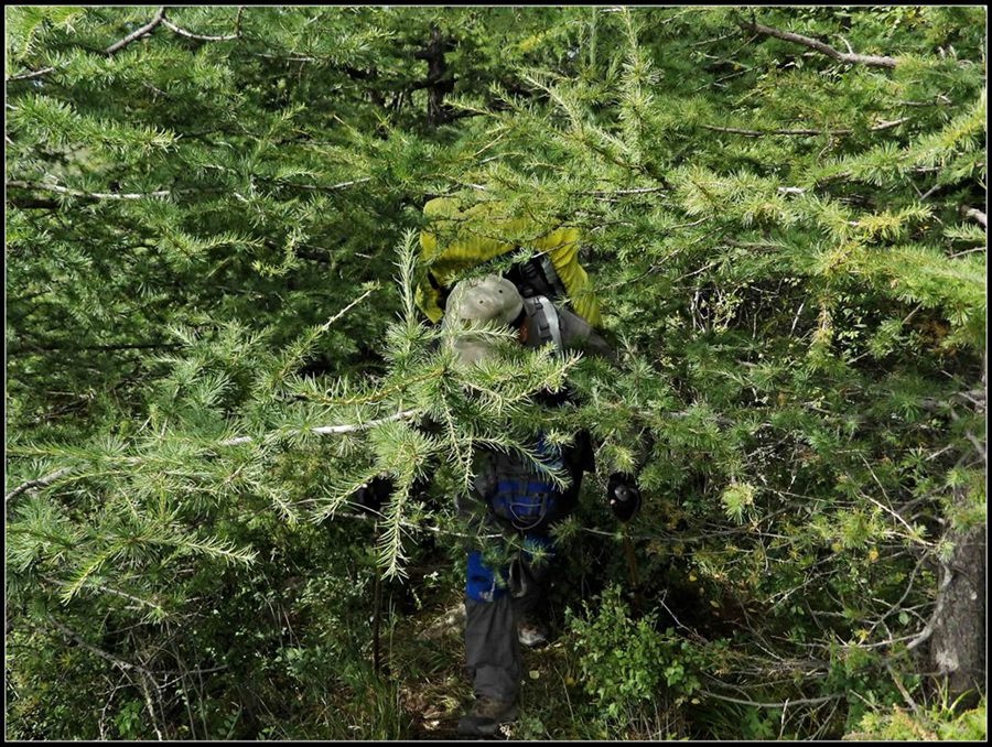 午餐之后,我们又上路了,目标——灵山之颠;路线——沿这条山脊一直向上走。应该说,这才是我们今天真正的任务,才是今天的重头戏,相比下边我们要走的路,今天上午的几个小时只是一场毛毛雨哈。 午餐点再向上是一道防护网,那网虽然形同虚设,根本拦不住人,但它却提醒我们:你进入保护区了,一定要注意防火安全,还要注意保护环境, 只有这样,你才对的起驴友的称呼,你才对的起这座山。 1 上升途中回看对面山脊上的山口和之字形的公路 民谣称:百花山,高入天,它在灵山的半中间,西灵山高过天,它在灵山头顶间。灵山之高大由此可见一斑。灵山,山体高大,山形秀美,地势复杂,树高林密,,连当地的放着人放羊一般也只上到半山,很少登顶。而北京 驴友登灵山多走大木场或孔涧,很少走我们这条路,这样一来,这条路更有一些神秘感了,现在的山坡上路很明显,但一会儿还会有路么,小路显不显,岔路多不多,我们会不会因走错路而耽误时间,能不能顺利的登顶?这些都是悬念。 果然,饶过一个陡崖后,路渐渐的变小了,逐渐小的难以分辨了。老慢远远的走在前边,他喊了一声:“没路了”,转身向上攀去,很快消失山坡上的乱石间。 走在前边的老慢 我感觉我们又走错路了,真正的路应该在山脊上,于是没走老慢走的那条“路",而是沿着断断续续的路径直接向山脊上攀去。后边几个人也都跟了过来。 沿陡坡向山脊攀升的队友 穿过最后一片荆棘,我们登上了山脊。山脊上有茂密的松林,林子中果然有一条路,只是那路要不时的猫下腰来钻,我们背着大包并不好走。不过只要有路心里就有底儿,我们沿着它向上走去。 林子外的风景 客观的说,山脊上的路并不太陡,也不太荒,更不险,与我们前两天走过的路相比好走多了,只是钻林子时要屡屡的低头,现在的关健,走到今天,走到现在我们的体力都不足了,体力才是最大的问题,尤其是不锈钢和葫芦岛,他俩一直拉在最后边,两人象一对好基友,又象相临为伴多少年的老临居,象村里的大爷大妈,一边走,一边叨叨咕咕的说个不停,天南海北,海阔天空。至于说了些啥我是不知道,因为我离他俩一直有几十米远。 我们所走的山脊是林子的边缘,走过一片林子是一片草地,走不了几步又是一片林子,路就这样在密林与草地中交错前进。时间一分一秒的消失了,然而,没有穷尽的林子一直遮档着我们的视线,灵山的顶在哪儿一直看不见。尽管如此,我们还是相信走一步就会近一步,只要你不停的走下去,迟早会登顶的。就是不知老天爷给我们留下那么多的时间没有。 老慢早就不见了踪影,从他翻上山脊前我们最后一次看见他,在这之后就再也没看到过他的影子,这可不行,一会儿见了面得说说他,一支队伍,要保持紧凑的队形,不能只是自己往前边跑,万一要是有个灰太狼或者美女蛇把你收走了,你在哪里儿丢的我们都 不知道,你LP要是朝我们要人可怎么办? 老鬼的体力不错,他一直和我不离左右,本来我俩能走的再稍微快一点,但因为要不时的等不锈钢他们,我们无法走的更快。 饶过一座石峰后视线赫然开朗,我们看见了久违的灵山,看样子至少一个小时之内我们还是登不了顶。看着一分一秒流失的时间,看着似乎永远也走不到的灵山,我真着急:如果登顶太晚,今天下不了山,明天的行程就全打乱了。因为后天大多数人都要上班,凌晨之前我们必须赶回家。今天要是下不了山,明天就没有时间再往东灵走,我们就只能在孔涧结束活动。那么一来,孔涧到东灵山一段路就甩下了,就无法和我以前走过的下观威-九山-沿河城、黄草梁-爨底的线路连起来,以后再抽时间走那一段路,又有点不值。不走,我走太行的活动中就缺了一环, 就是一个遗憾。可我着急归着急, 又一点办法也没有,我们已是强弩之末,个个心有余而力不足,想加快步伐也快不了,根本做不到。 远处,白云蓝天下的灵山 身后不时停下来休息的不锈钢和葫芦岛 回看身后,小五台清楚的出现在我们的视线中,我们就是从那个方向一步一步走过来的,想一想,那么远的距离,那么多道山脊。我们一路走过来,真的不容易。现在看,这条路线比想象的要难,强度也不亚于五台连穿。加上我们第一天走错了路,现在的强度甚至要大于五台连穿。一想到这,我又为我的队友们自豪,辛苦了,兄弟们。你们是好样的。 透过树尖远眺小五台,能分辨出来的有北、东台、三岔,还有有小五第六台之称的牛见草山 把相机放在地上,自拍的一张照片 走上连续的大草坡了,身边的松树稀稀拉拉的散落着已经不成片。根据从远处观察到的情况,我们离顶不远了,让老鬼给我拍了两张照片,我加速向上冲去。这次出行我可过足了臭美的瘾,几天中拍的照片比过去几年都多,都是测评惹的“惹的祸”。 山顶上盘旋的鹰 4点整,午餐之后大约两个半小时,我登上了灵山的次峰——西灵的山顶,这个速度比我估计的略快。按这个时间推算,如果从村里一路走上来,登顶大约需要将近5小时, 现在,让我们感受一下一览众山小的气势 前边说过,灵山共有三个尖,主峰叫石城,石城西北的另一尖被称为西灵,石城西南也有一个更低一些的尖,有人称之为南灵。登灵山,一般是登西灵和石城两个尖。我们现在登上的就是西灵,山顶的标志是两个玛尼堆,历史上西灵顶上曾有一小庙,如今庙宇全毁,只剩了残砖碎石,被人垒成了两个玛尼堆。 从正面看西灵顶上的玛尼堆 比我早了足