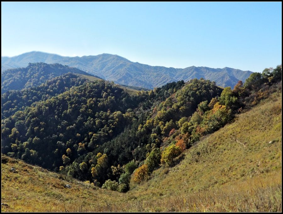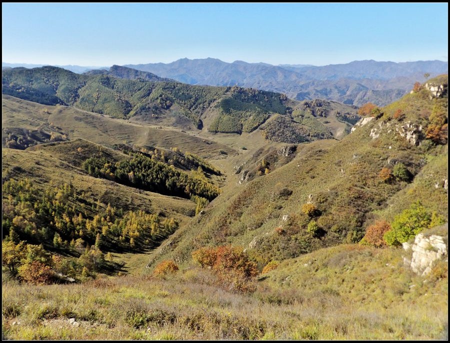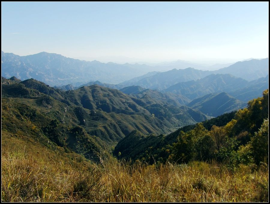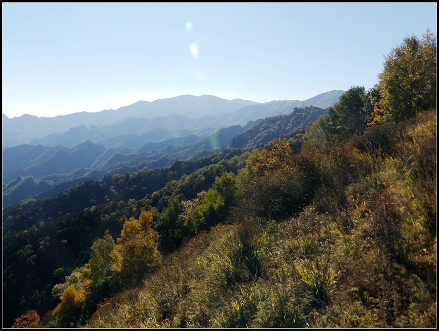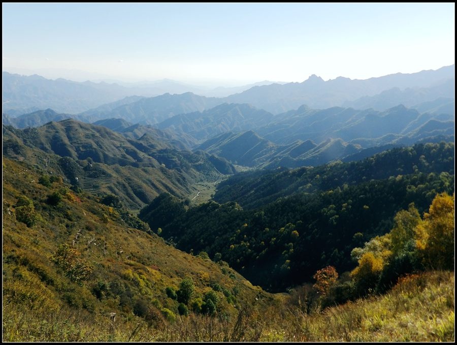 40分钟后,我们登上了山脊,我们又一次走在了晋冀两省的分界线上,又一次看到了河北一侧的秀丽风光。