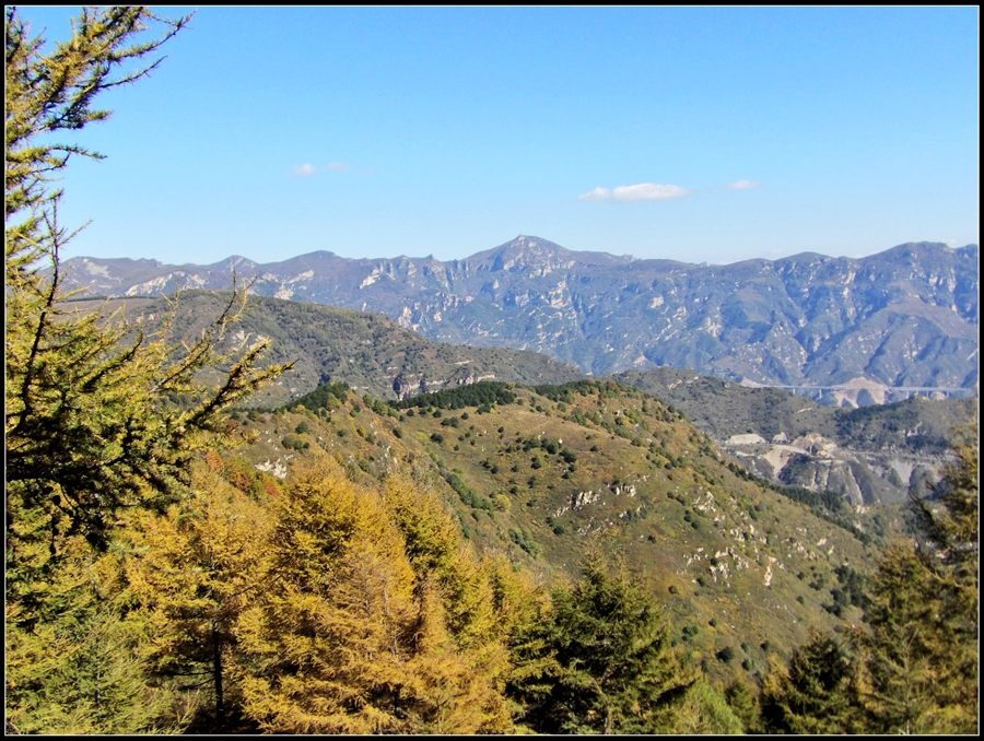 绕过山头,我们又一次看到了河北一侧的风光,今天天气不错,不能说万里无云,但也是云量极少,特别是空气干爽,因此视线极好。远处的山清楚的展现在我们面前,甚至连保五高速上飞驰的汽车都历历在目,可惜我却不能随心所欲的拍照。